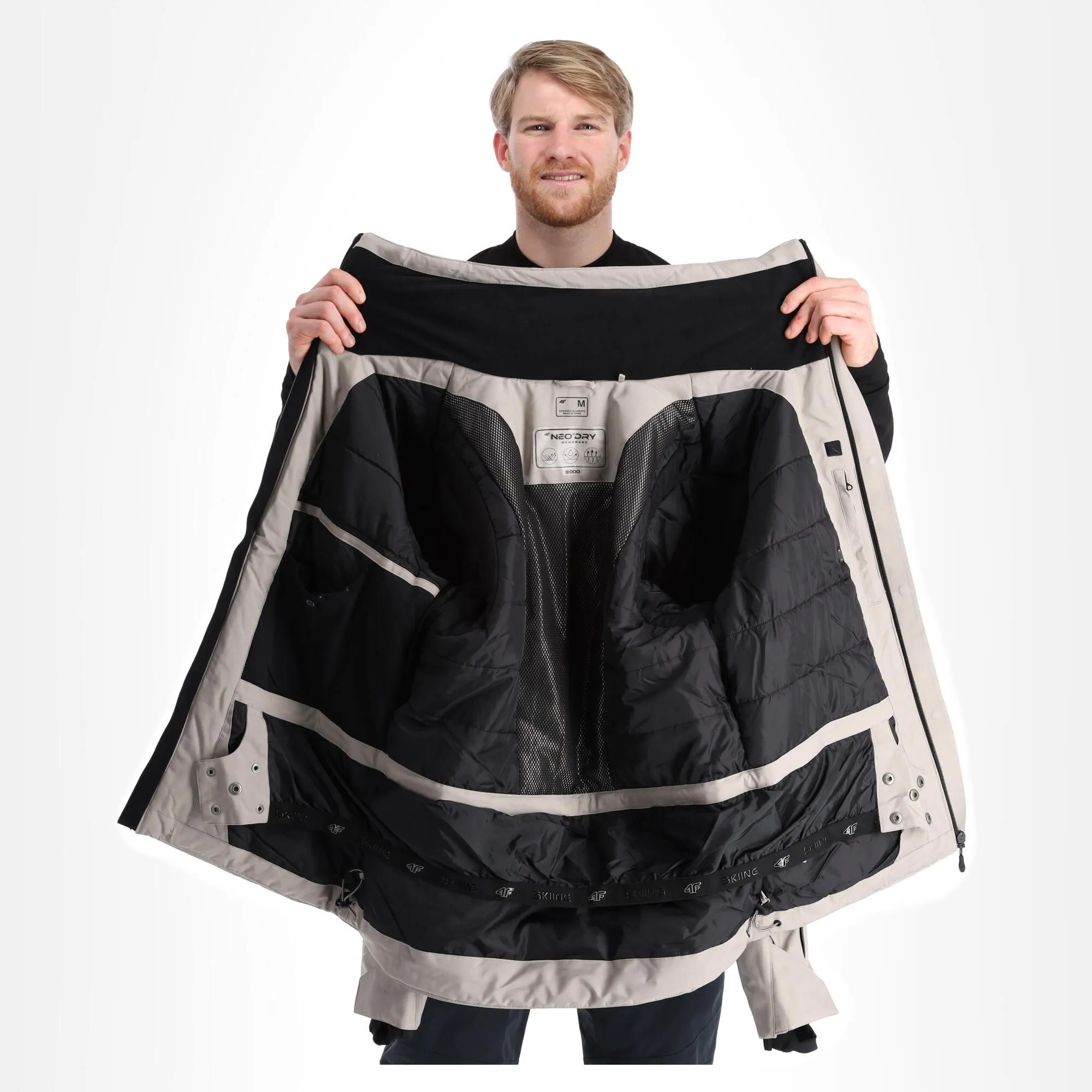 - Wasserabweisende Skijacke Die Skijacke ist wasserabstoßend, aber nicht undurchdringlich. Der Grad der Wasserdichtheit kann in Abhängigkeit von der Wassersäule bestimmt werden.