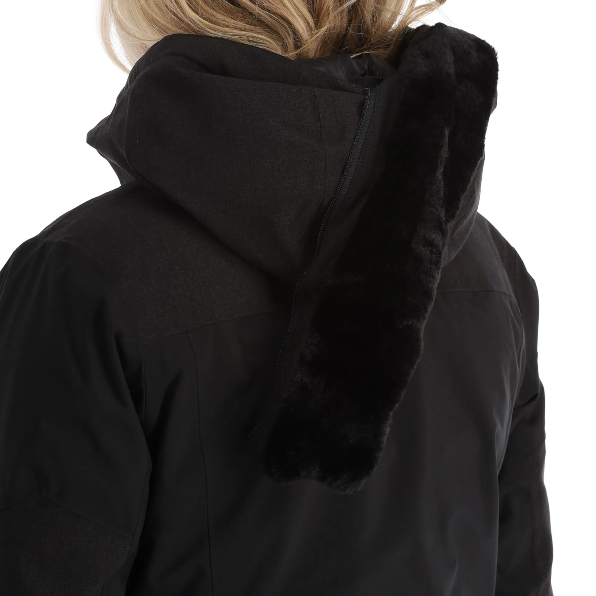 - Abnehmbarer Fellkragen Der Pelzkragen an der SKijacke ist abnehmbar.