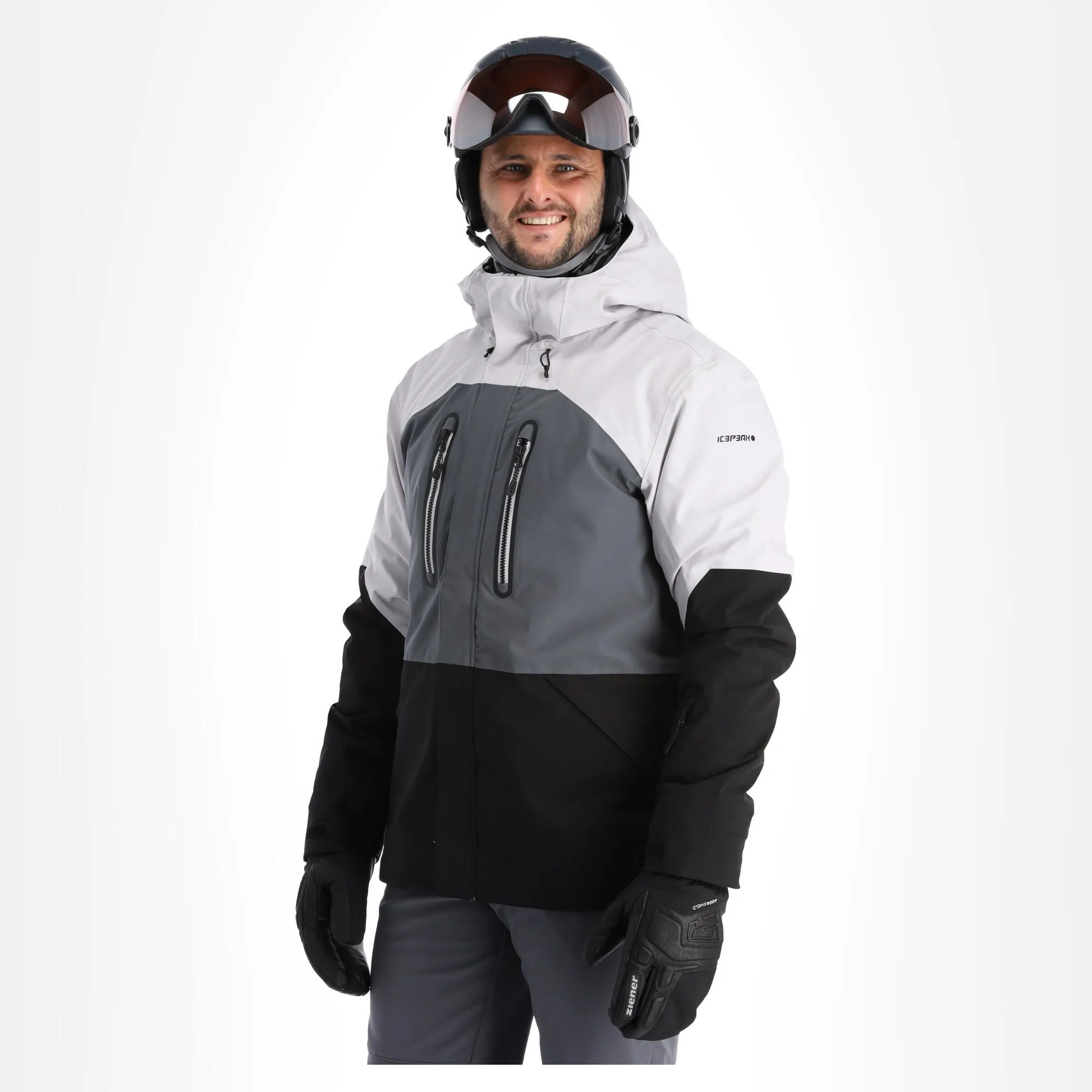 - Wasserabweisende Skijacke Die Skijacke ist wasserabstoßend, aber nicht undurchdringlich. Der Grad der Wasserdichtheit kann in Abhängigkeit von der Wassersäule bestimmt werden.