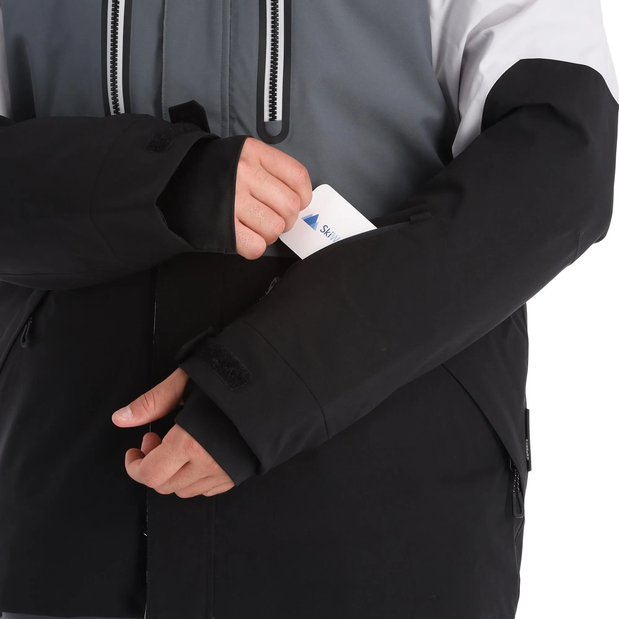 - Tasche für Skipass Die Skijacke besitzt eine Jackentasche, die speziell für einen Skipass entworfen wurde, so dass dieser immer gut und griffbereit verstaut ist.