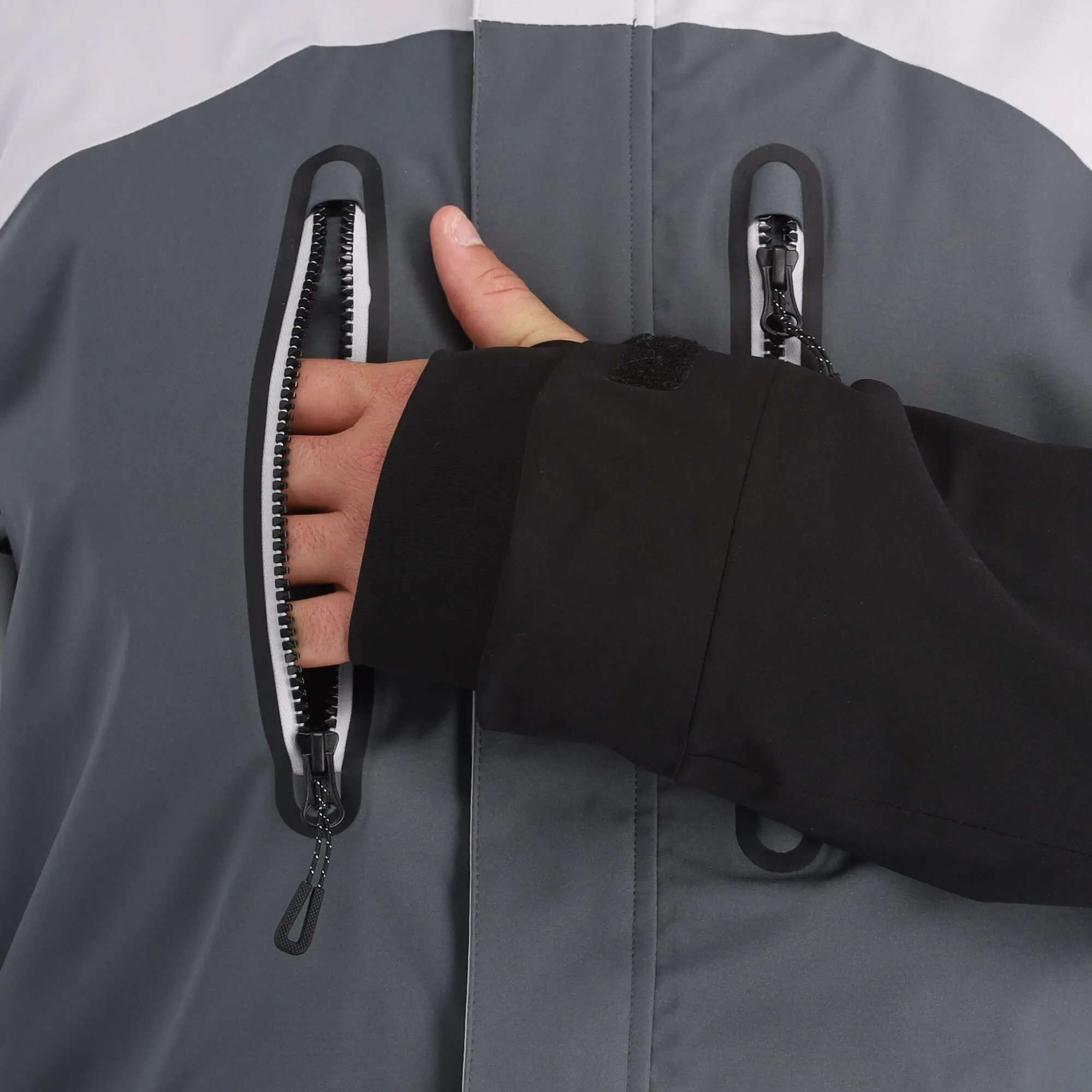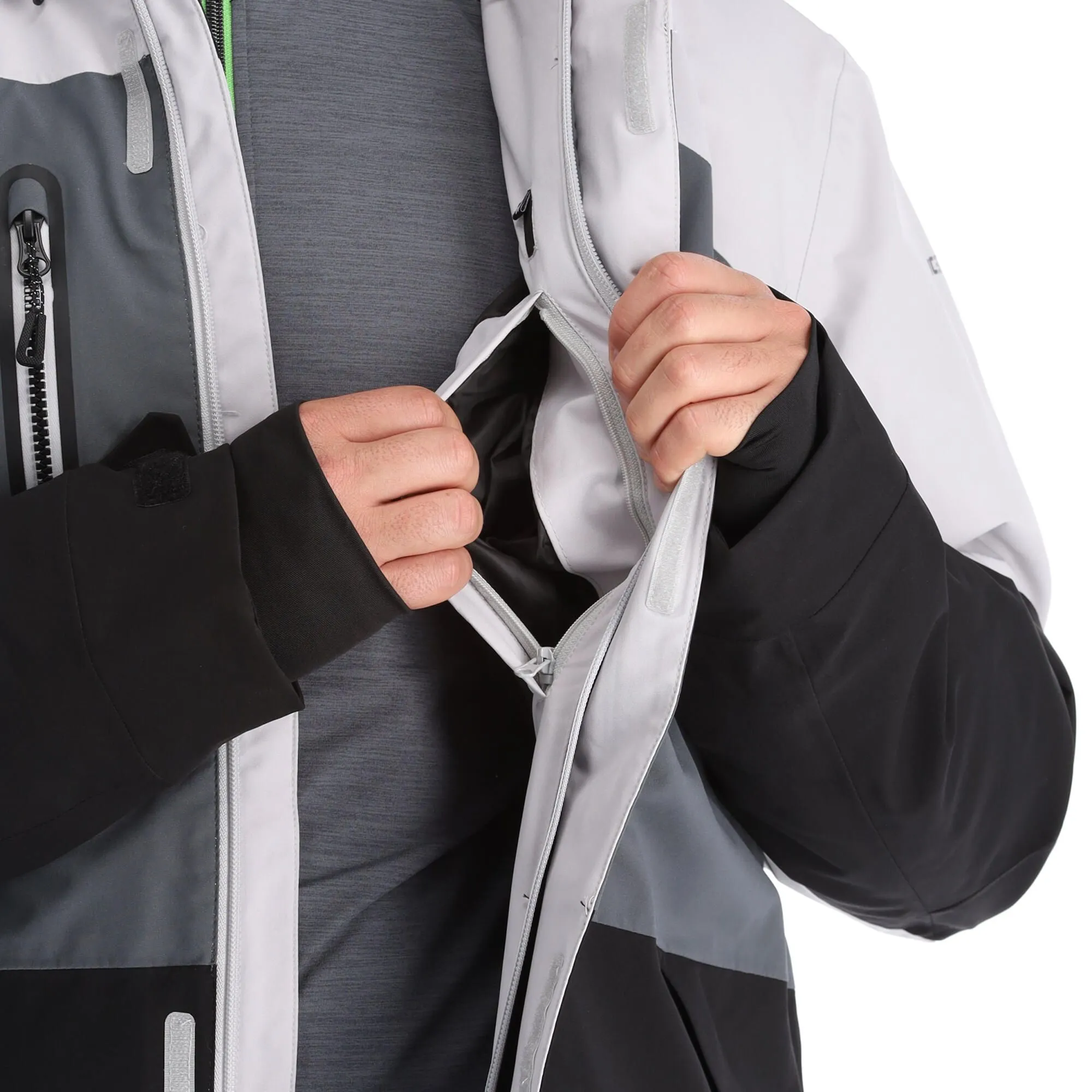 - Daumenlochmanschette Die Skijacke hat ein Loch in der Manschette für deine Daumen, wodurch du noch besseren Halt hast und Schnee und Wind nicht durch die Ärmel eindringen können.