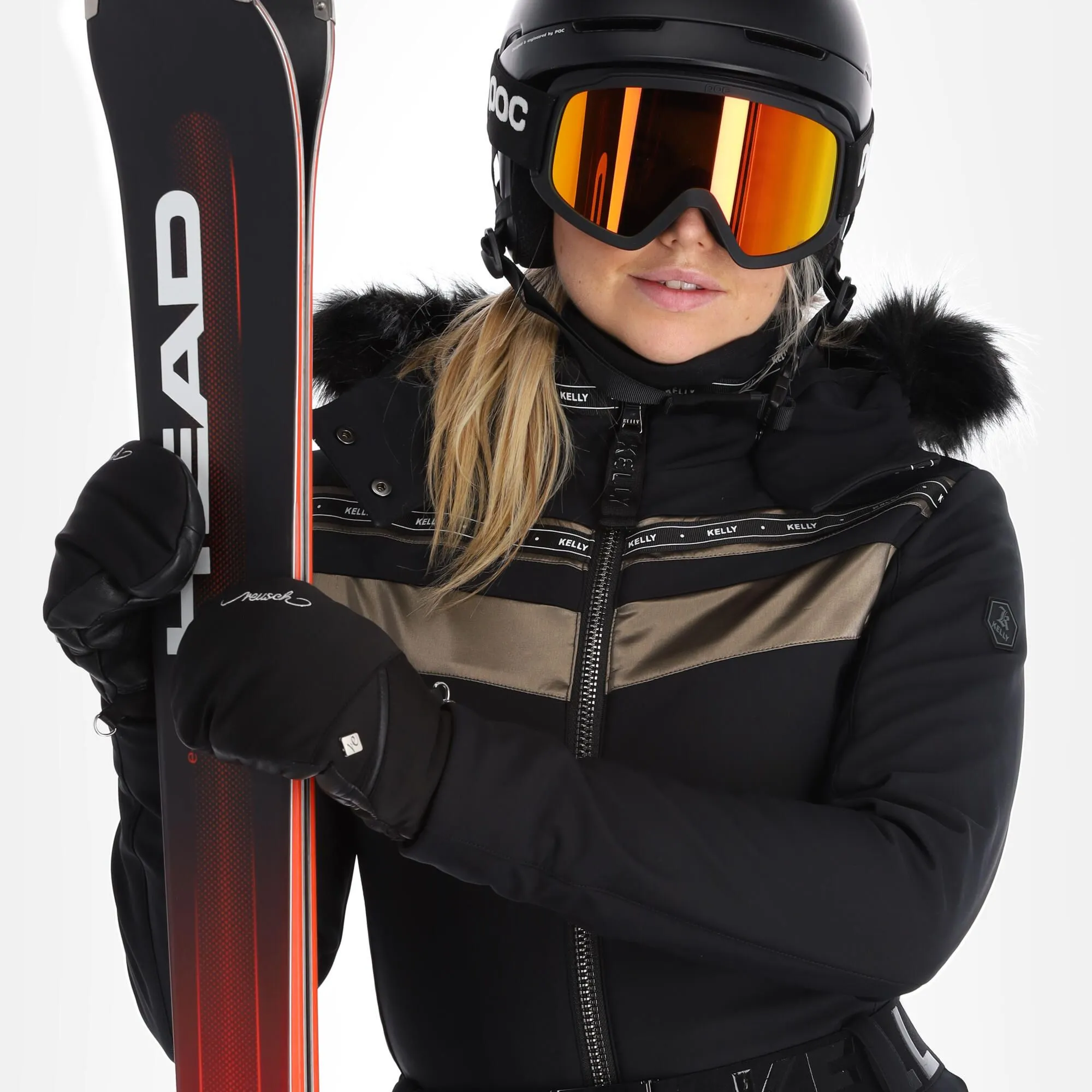 - Echter Pelzkragen Die Skijacke hat einen echten Pelzkragen aus Waschbär.