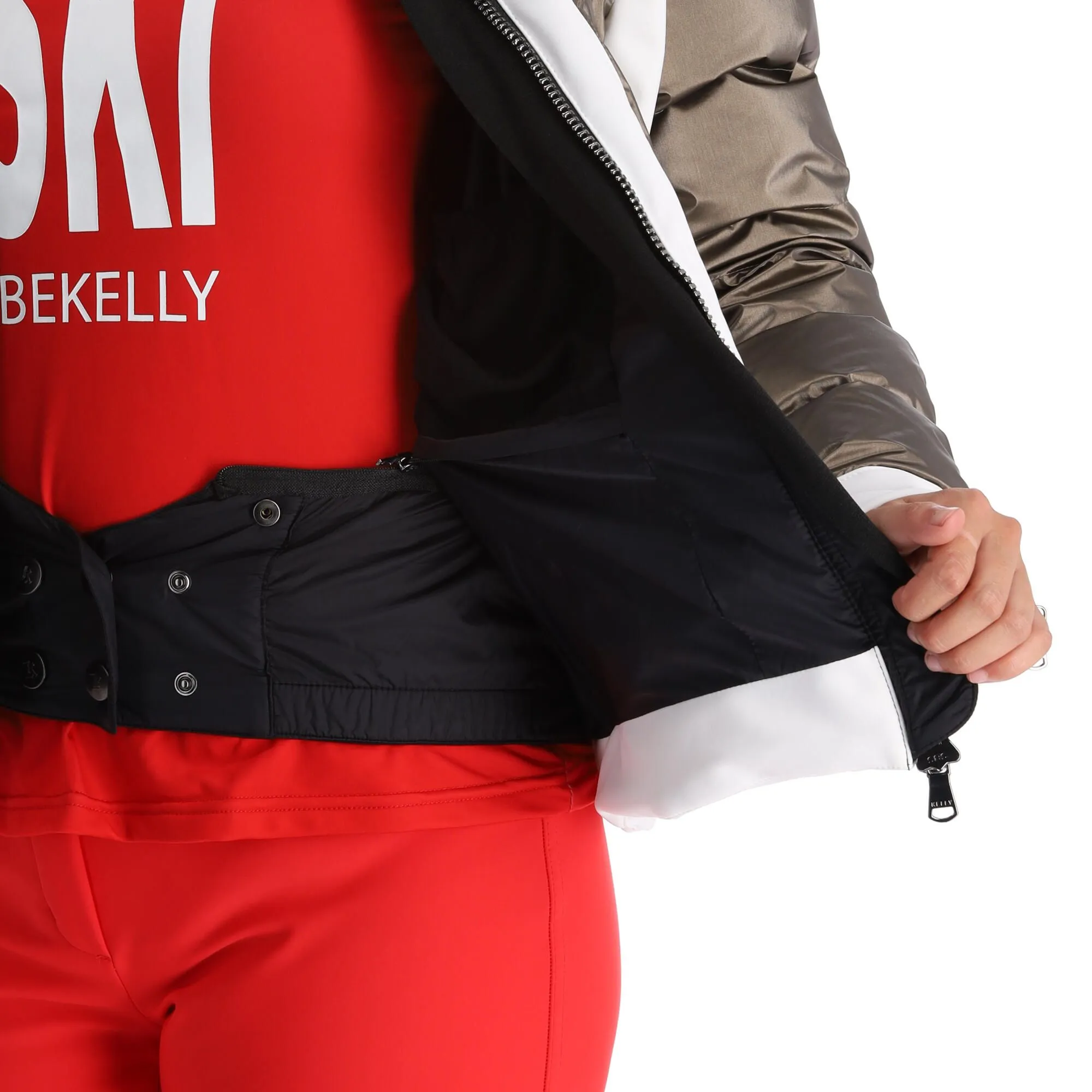- Abnehmbarer Schneefang Der abnehmbare Schneefang besteht aus einem elastischen Band mit Stoff, der an der unteren Hälfte der Jacke angebracht ist und sorgt dafür, dass kein Schnee in die Kleidung eindringen kann. Der Schneefang ist abnehmbar, wenn die Jacke nicht im Schnee verwendet wird.