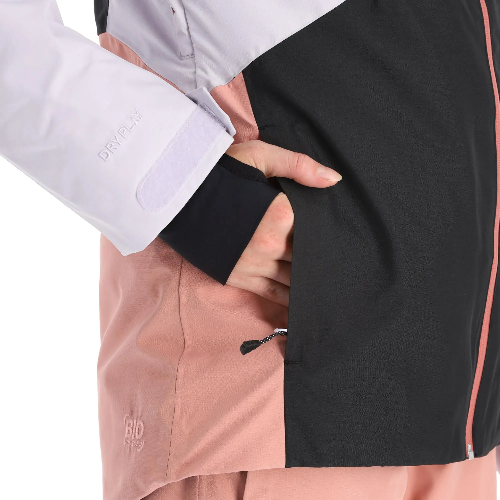 - Daumenlochmanschette Die Skijacke hat ein Loch in der Manschette für deine Daumen, wodurch du noch besseren Halt hast und Schnee und Wind nicht durch die Ärmel eindringen können.