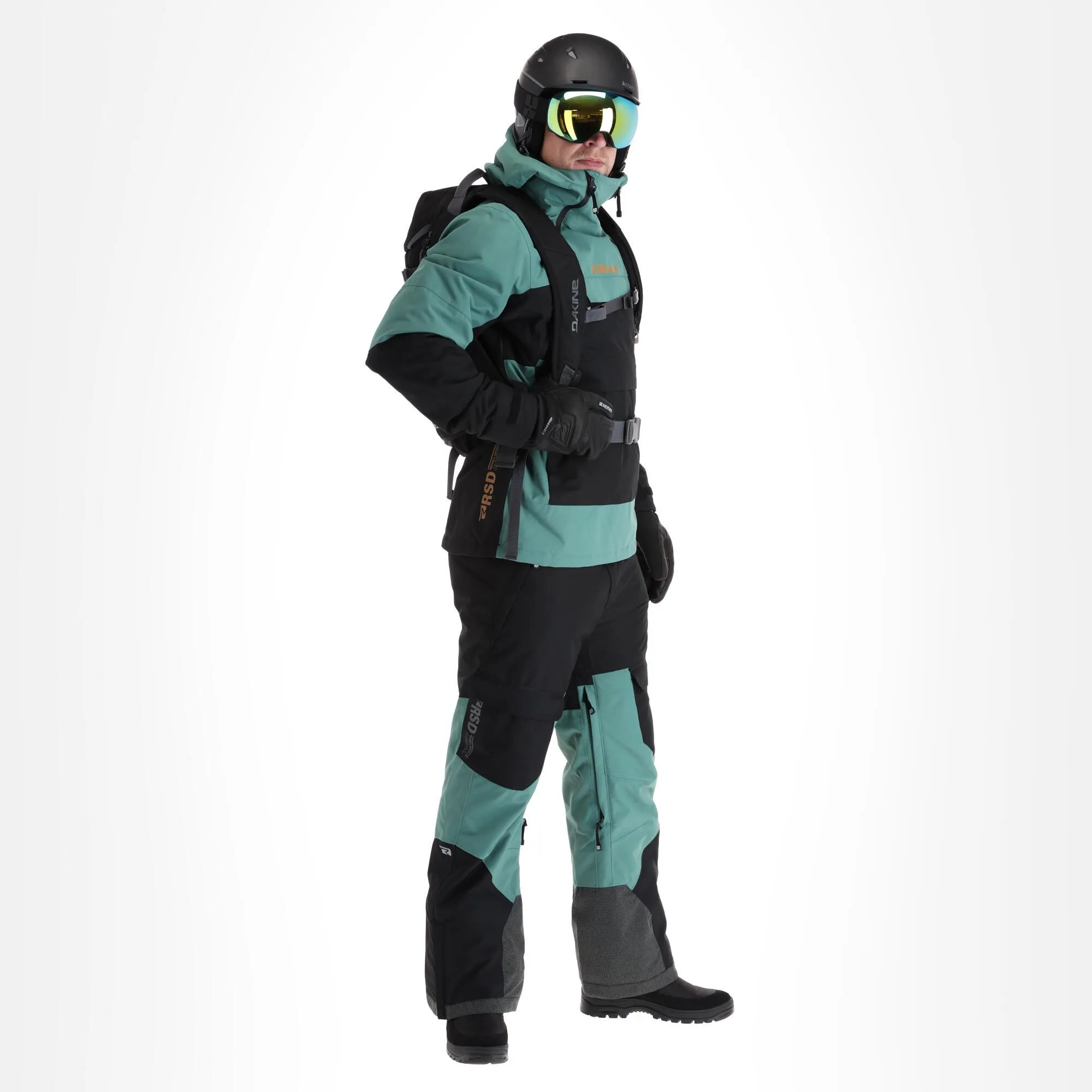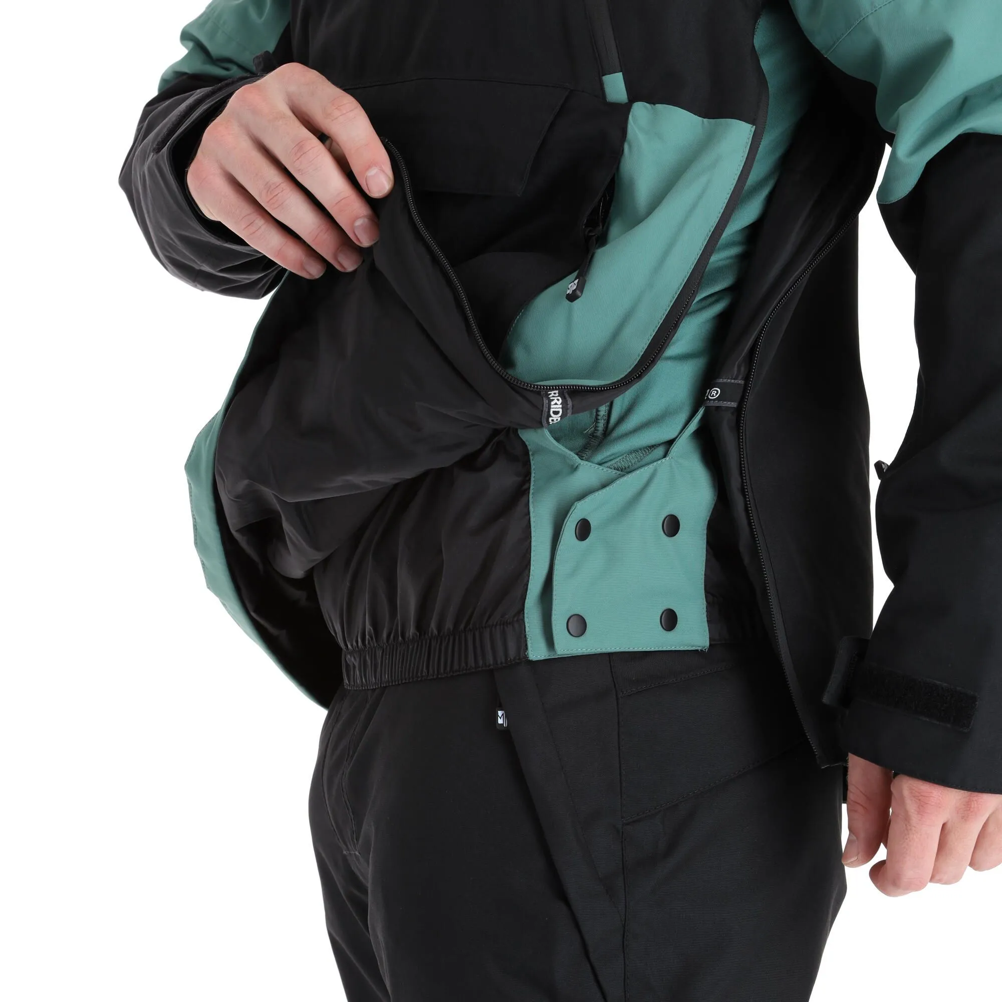 Becks has two slanted front zippers and a zipper all the way down the left side to help you put it on. The regular fit offers enough space to move around freely on the slopes.