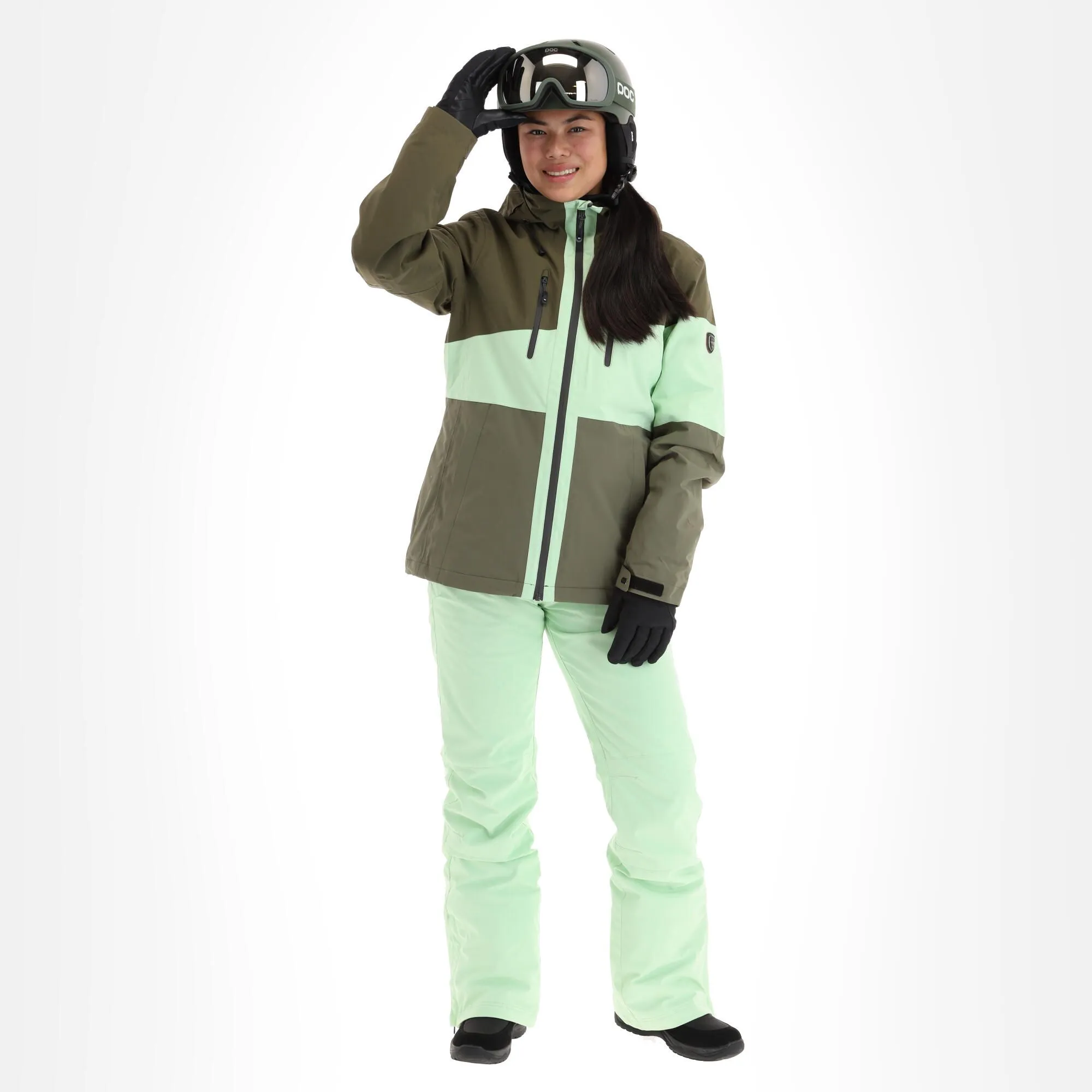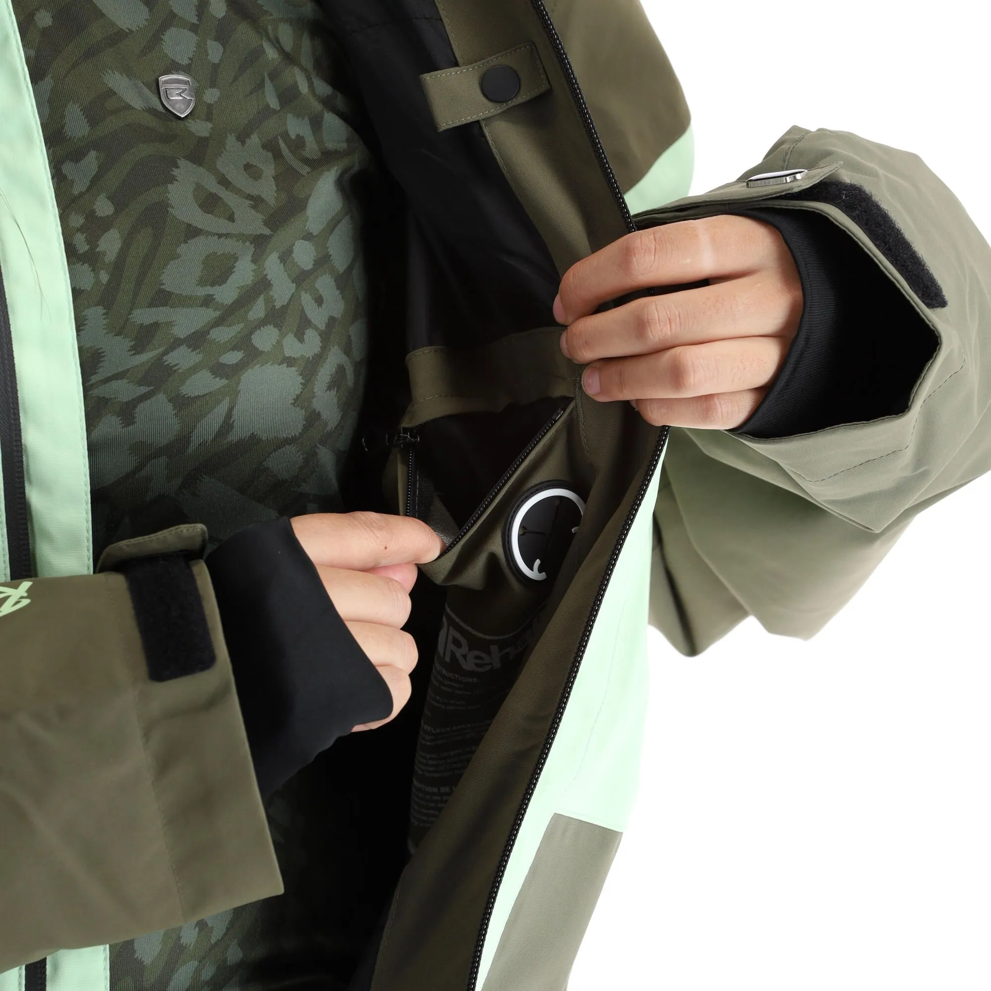 - Mobiltelefon-Tasche Die Skijacke besitzt eine extra Jackentasche, in der du dein Handy verstauen kannst, während du unterwegs bist.