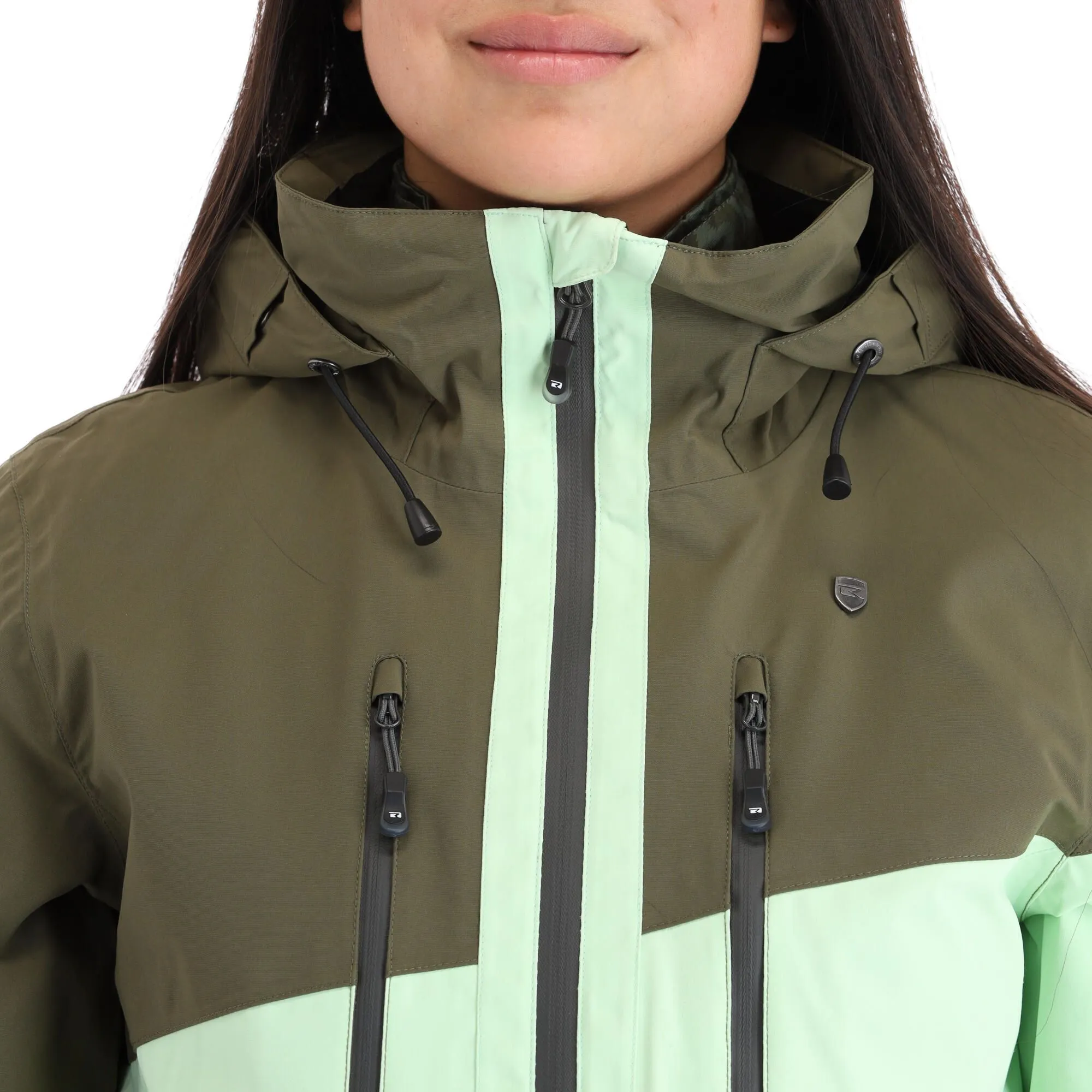 - Wasserdichte Reißverschlüsse Der große Reißverschluss vorne an der Skijacke ist wasserabweisend.